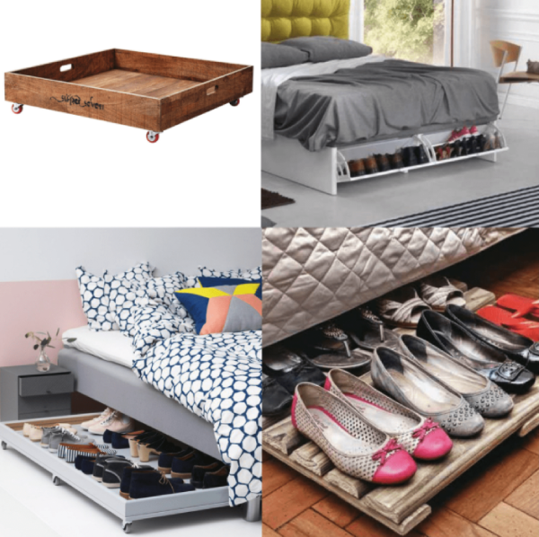 O bien manos a la obra: Debés colocar debajo de la cama una tabla de madera de gran tamaño y añadirle cuatro ruedas (Recordá previamente tomar las medidas de altura que tenés debajo de la cama, para tener en cuenta la madera a comprar, la laturas de las rueditas e incluso la altura de los zapatos que vayas a colocar!)